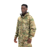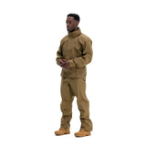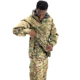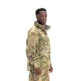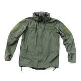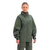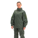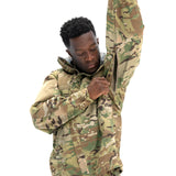 Concealed waterproof zippers are used for the center front zipper, hand pockets, and bicep pockets, keeping your core and your goods safe and dry. Full length side/pit zips thru the waist hem, allow for complete access to kit, comm’s, and ease of donning/doffing. The interior of the jacket is seam sealed to ensure the seams don’t wet out, and there are two mesh pockets to store extra goods if necessary. The hood is stow-able and fully adjustable and helmet-compatible, with a laminated brim to keep the elements out of the wearer’s eyes. Our wrist cuff features a Velcro® wrist stay with half elastic to cinch around the wrist, blocking out the wind and rain.