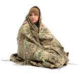 The Wild Things Shelter Liner (56" x 80") is made from soft 70 denier nylon treated with NanoSphere® DWR quilted to 2 oz PrimaLoft® Sport synthetic insulation. The Shelter Liner is a lightweight, packable, insulated blanket. Multiple tie-downs allow the Shelter Liner to tie/cinch up around the user. Used in conjunction with our Waterproof Shelter (sold separately), this combination creates a warm and dry emergency shelter system.