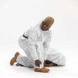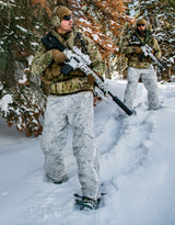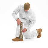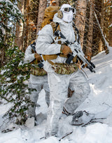 Overwhites provide valuable protection when the snow flies or when moving into higher altitudes and across snowpack. Primary concerns are light weight, low bulk and ease of donning and doffing. Pack and body coverage are vital! Wild Things has you covered. Traditional overwhites are made of cotton, are heavy, hold water, and are prone to mildew. Our White Out Overwhites do more than just help you blend into the snow. We use a functional and durable 70-denier nylon fabric in Multicam® Alpine or Snow MARPAT that is abrasion resistant, blocks the wind and is treated with a durable water resistant finish.